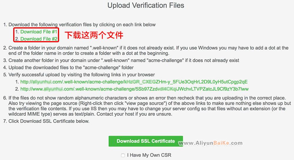 注意:不要勾選“I Have My Own CSR”,不要勾選,直接點(diǎn)擊“Download SSL Certificate”即可生成密匙。