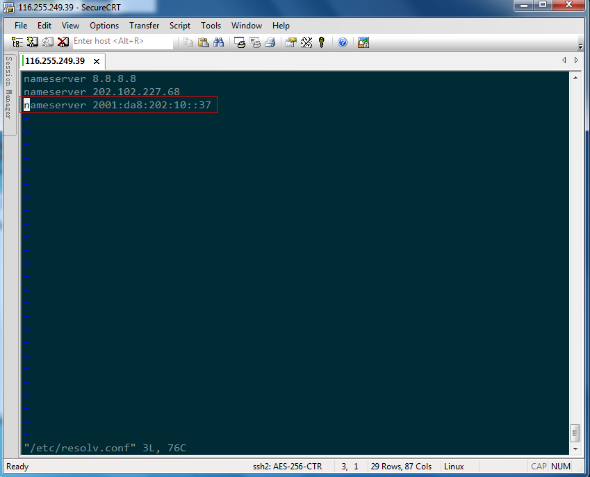 添加IPv6 DNS,用vi等編輯器打開/etc/resolv.conf,添加以下一行: